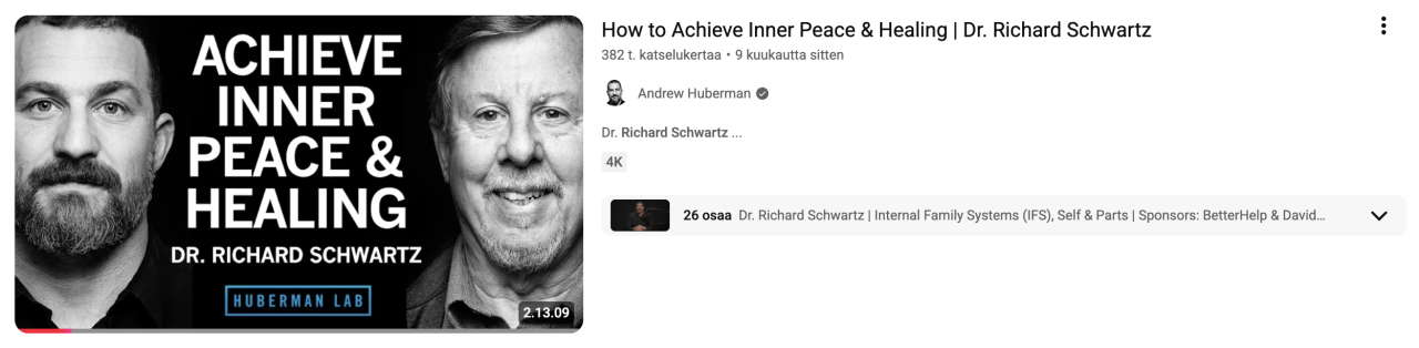 Voit tutustua Richard Schwartzin ajatuksiin ja IFS-menetelmään tämän videon kautta: