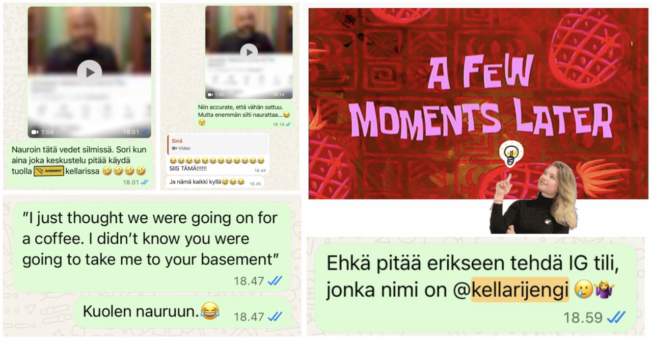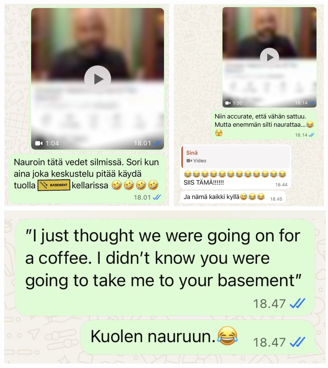 Lähetin ystävälleni muutaman klipin tästä kellarimetaforasta, ja myös hän alkoi välittömästi nauraa.