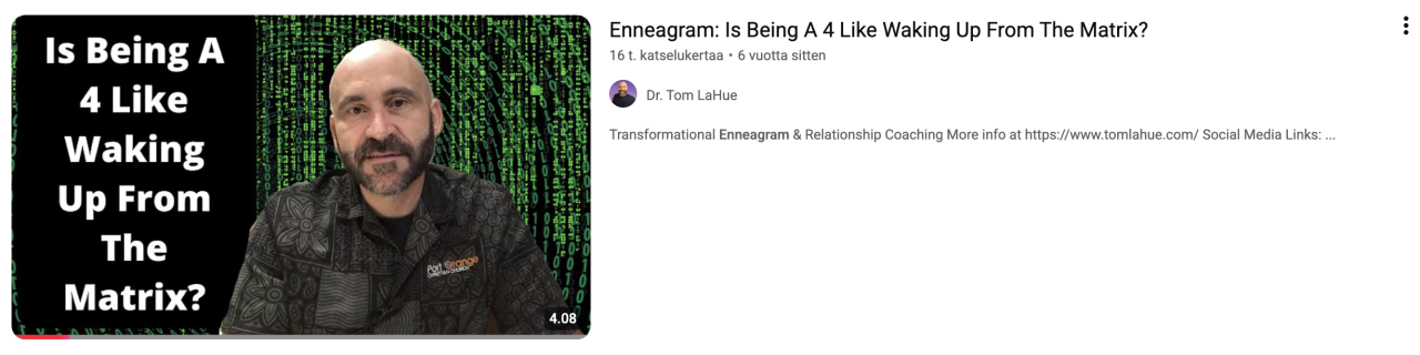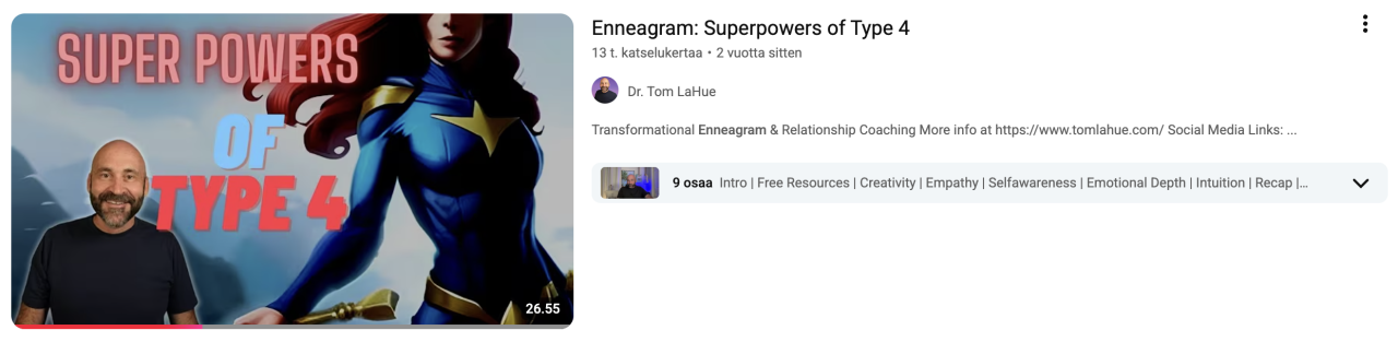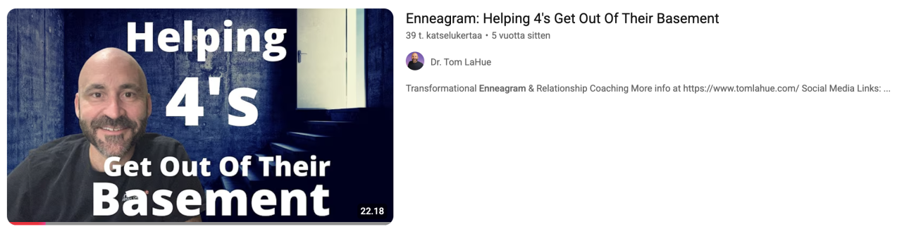 Opiskellessani muutamia vuosia sitten Enneagrammin persoonallisuustyyppejä törmäsin YouTubessa Dr. Tom LaHuen videoihin, joissa hän käsitteli Enneagrammin tyyppiä numero 4.